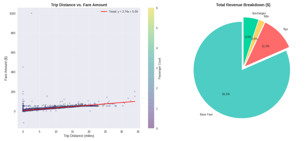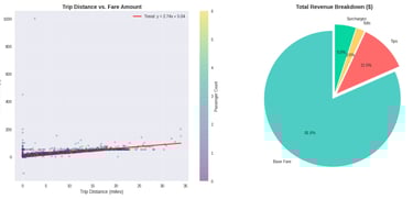 Exploratory data analysis and visualization to support fare estimation modeling and operational insights.