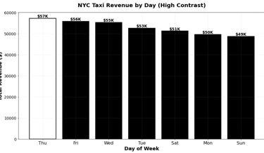 Temporal patterns documented: Peak revenue days identified (Thursday)