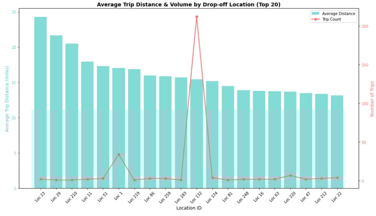 Geographic patterns: Drop-off location distribution and trip distance by location